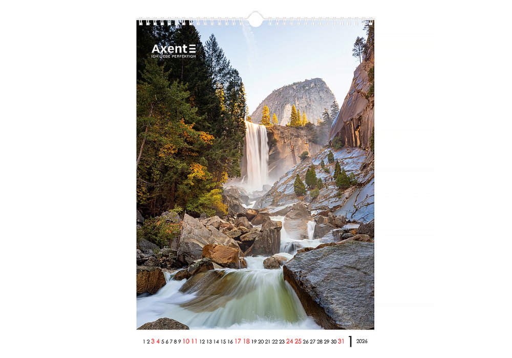 Календар A3 настінний на 2026 р "Waterfalls", Axent (Артикул товару: 8804-26-2-A)